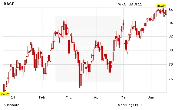 Die Aktie des Chemiekonzerns BASF notiert direkt unter ihrem Allzeithoch. Ein Ende der Rallye ist noch nicht in Sicht. Die Deutsche Bank hat jüngst ihre positive Einschätzung überarbeitet und das Kursziel bestätigt. Auch DER AKTIONÄR bleibt zuversichtlich. Die DAX-Aktie bleibt ein Basisinvestment. Der Konzern ist hervorragend aufgestellt und mit einem KGV von 15 für 2014 ist der Chemieriese günstig bewertet. Das Kursziel lautet vorerst weiterhin 95 Euro.