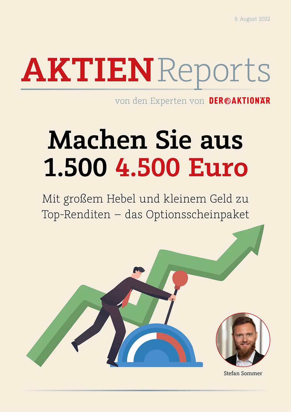 Und es ist nicht notwendig, große Summen auf einmal zu investieren. Schon mit einem Startkapital von 1.500 Euro können Anleger mit den passenden Optionsscheinen ihr Geld vervielfachen. Im Idealfall werden so aus dem Einsatz 4.500 Euro und mehr. Die ersten Erholungstendenzen an den Märkten zeichnen sich bereits ab, aber in den kommenden zwölf Monaten ist hier noch deutlich mehr drin. Viele Unternehmen fahren weiterhin hohe Gewinne ein und haben ihre Prognosen für die Zukunft nach oben geschraubt. Die Chancen auf deutlich steigende Kurse sind also groß.