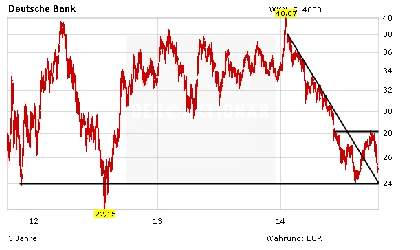 DER AKTIONÄR bleibt hingegen für die günstig bewertete Aktie der Deutschen Bank zwar grundsätzlich positiv gestimmt. Angesichts der aktuellen Marktlage sowie des sich zuletzt wieder eingetrübten Chartbildes sollten Anleger allerdings noch an der Seitenlinie verharren. Wer bereits investiert ist, sollte den Stopp bei 21,50 Euro beachten.