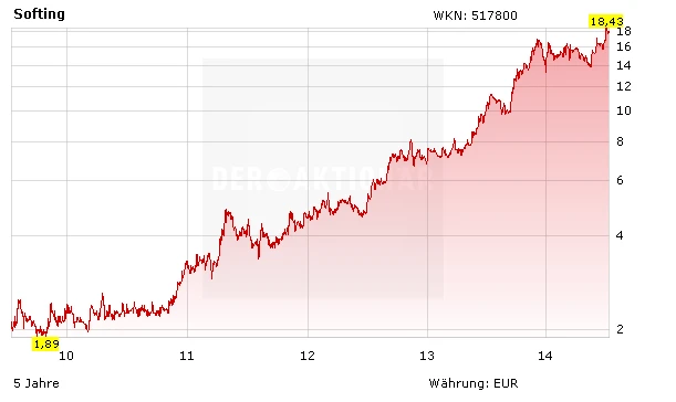 Ich denke der Markt versteht die gerade ablaufende Transformation der Softing hin zu einem internationalen Unternehmen in der 100-Millionen-Euro-Umsatz-Liga. Damit sind wir in unseren Märkten größer und international besser verankert als jeder unserer Wettbewerber. Diese Perspektive mag in Teilen schon eingepreist sein. Aber niemand sollte glauben, dass wir uns nach Erreichen dieser Ziele ausruhen werden. Wir werden neue Ziele festlegen und mit deren Realisierung beginnen, was dann auch wieder eingepreist werden wird. Wir bewegen uns in einem riesigen Markt. Auch wenn es immer wieder mal Rückschläge am Markt geben wird, ist dies über die Jahre gesehen ein Spiel mit einer nach oben offenen Skala.