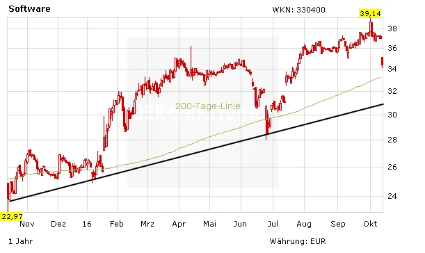 Trotz der schlechten Quartalszahlen hält das Management an der Jahresprognose fest. Die operative Marge soll im Geschäftsjahr zwischen 30,5 und 31,5 Prozent liegen. Außerdem steht das traditionell stärkste vierte Quartal der Software AG noch bevor.
