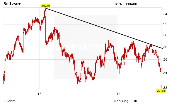 Im Zuge des Kursrutsches ist die Aktie unter mehrere charttechnische Unterstützungen auf ein neues Jahrestief gefallen. Bereits in der Vergangenheit hat die die Software AG den Markt mit Gewinnwarnungen enttäuscht. Anleger sollten an der Seitenlinie bleiben und nicht in das fallende Messer greifen.