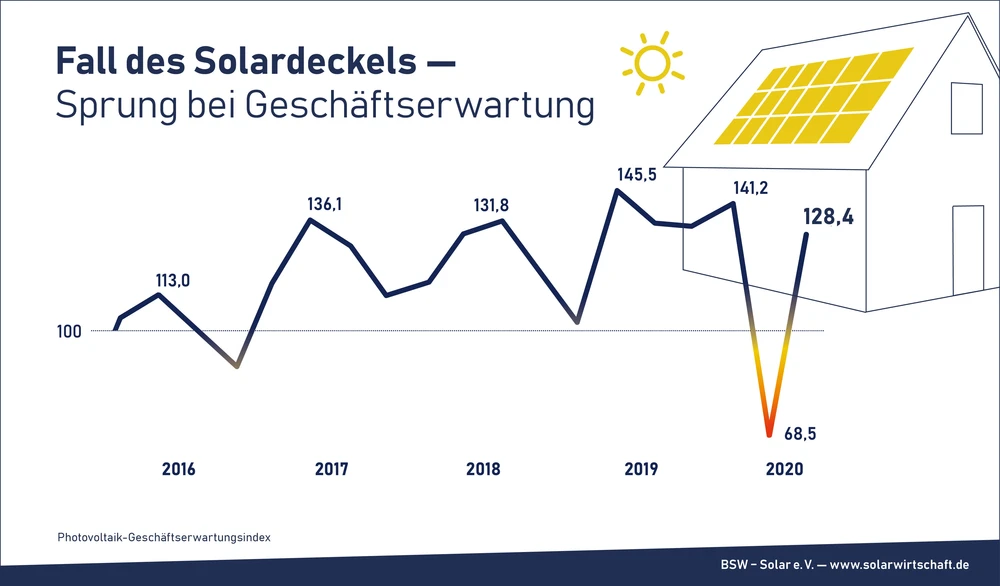 Während die neue BP-Studie den Anfang vom Ende des Öl-Zeitalters bestätigt, hellt sich das Umfeld für die saubere Sonnenenergie immer weiter auf. Bereits zur Jahresmitte war nach dem Wegfall des Förderdeckels die Stimmung in der deutschen Solarbranche nach oben geschossen. Die Marktforscher von EUPD Research erwarten alleine in Deutschland 2020 einen Zubau von 4,8 GW, was einem Mengenwachstum von 20 Prozent entspricht. Zwar sinkt die staatlich garantierte Einspeisevergütung für neu installierte Solaranlagen, doch gleichzeitig steigen die Strompreise für private Haushalte gerade in Deutschland immer weiter an.