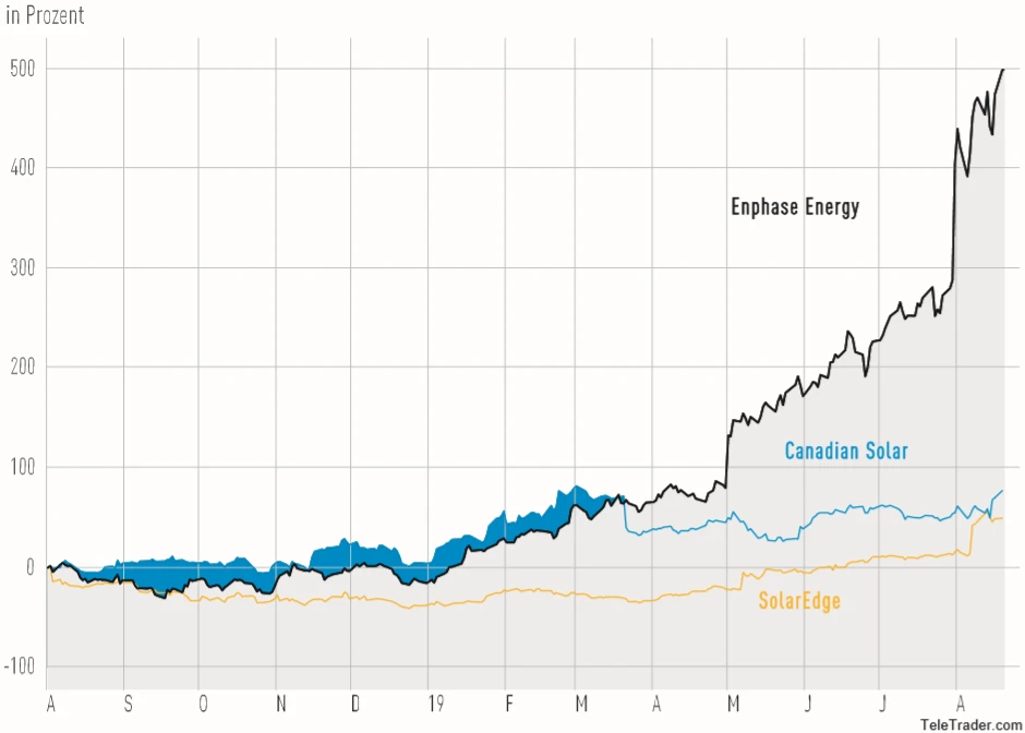 Aber auch SolarEdge überzeugt mit seinen fundamentalen Daten für das abgelaufene Quartal. Der Konzern präsentierte einen Gewinn von 0,94 Dollar je Aktie. Ein Jahr zuvor lag der Wert noch bei 0,82 Dollar. Der Umsatz konnte sogar um über 43 Prozent auf 325 Millionen Dollar gesteigert werden.