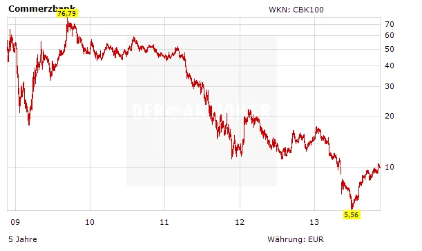 Doch wer glaubt, dass die Commerzbank Europas aussichtsreichste Bankaktie ist, läuft Gefahr, andere Top-Chancen zu verpassen. Denn in Europa gibt es eine ganze Reihe hochinteressanter Finanztitel, in die Anleger auch hierzulande ohne weiteres investieren können. DER AKTIONÄR stellt in seinem neuen Spezialreport "Commerzbank und Co: Die heißesten Bank-Aktien Europas" eben diese Titel vor - und nimmt selbstverständlich auch die Aktie der Commerzbank unter die Lupe. Eines sei an dieser Stelle schon verraten: Wer jetzt die richtigen Titel wählt, sichert sich die Chance auf rund 50 Prozent Rendite. Bank-Aktien sind wieder en vogue. Lassen Sie sich diese Chance nicht entgehen und lesen Sie jetzt den brandaktuellen Spezialreport "Commerzbank und Co: Die heißesten Bank-Aktien Europas", den Sie hier herunterladen können.
