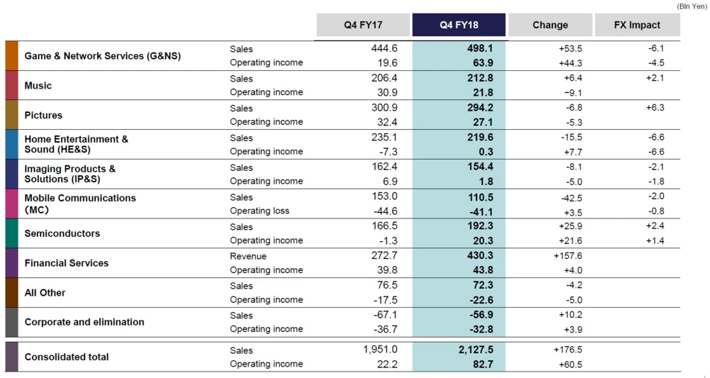 Sony hat seinen Geschäftsbericht für 2018 veröffentlicht und lieferte damit im Rahmen der Erwartungen ab. Insbesondere die Sparten „Game & Network Services“ und „Semiconductors“ konnten überzeugen.