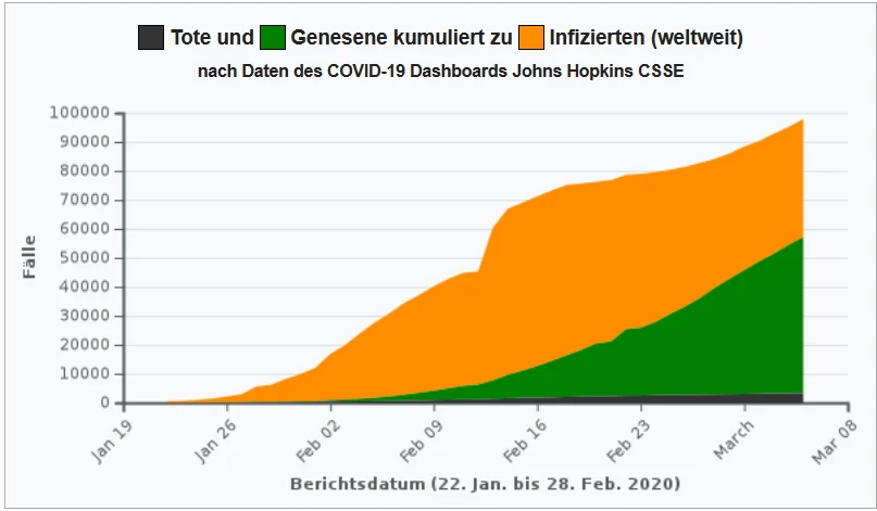 Die Anzahl der Genesenen liegt bereits bei circa 57.000. Das sind rund 60 Prozent aller offiziell gemeldeten Betroffenen.