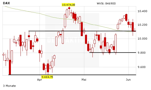 Der DAX wirkt nach den jüngsten Rücksetzern angeschlagen, deswegen die Flinte ins Korn zu werfen erscheint aber verfrüht. Noch hält der massive Unterstützungsbereich zwischen 200-Tage-Linie und 10.112 Punkten. Es wäre aber auch töricht, jetzt massiv in den Markt zu gehen. Erst einmal sollte der DAX die Hochs von April und Mai überwinden. Wer darauf spekluieren will, dass die Unterstützung hält, greift auf das im heutigen DAX-Check präsentierte Produkt zurück.