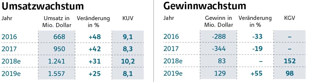 Die Bewertung mit einem KGV von 152 sollte bei Splunks Gewinnentwicklung nicht abschrecken. Langfristig heißt es: Profitieren von Wachstumstrends.