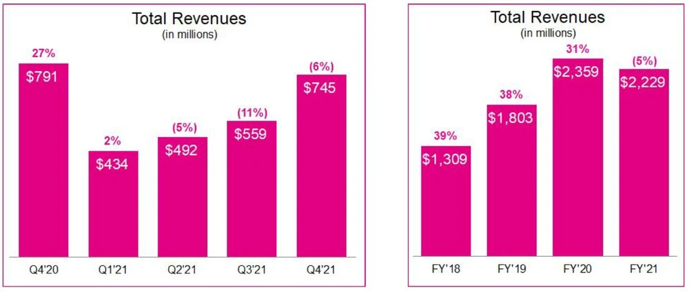 Splunks Umsätze im vierten Quartal schrumpften erneut um sechs Prozent auf 745 Millionen Dollar. Damit konnte der Anbieter der Monitoring- und Reporting-Plattform die Erwartungen der Analysten von 678 Millionen Dollar übertreffen.