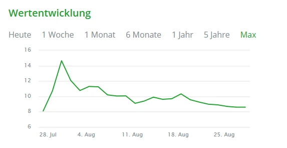 Im Hoch lag die Aktie der Spvgg Unterhaching bei 14,50 Euro Damit lag das Papier 79 Prozent im Vergleich zum Zeichnungspreis von 8,10 Euro im Plus. Der Club war damit an der Börse mit 56,5 Millionen Euro bewertet! Völlig überzogen!