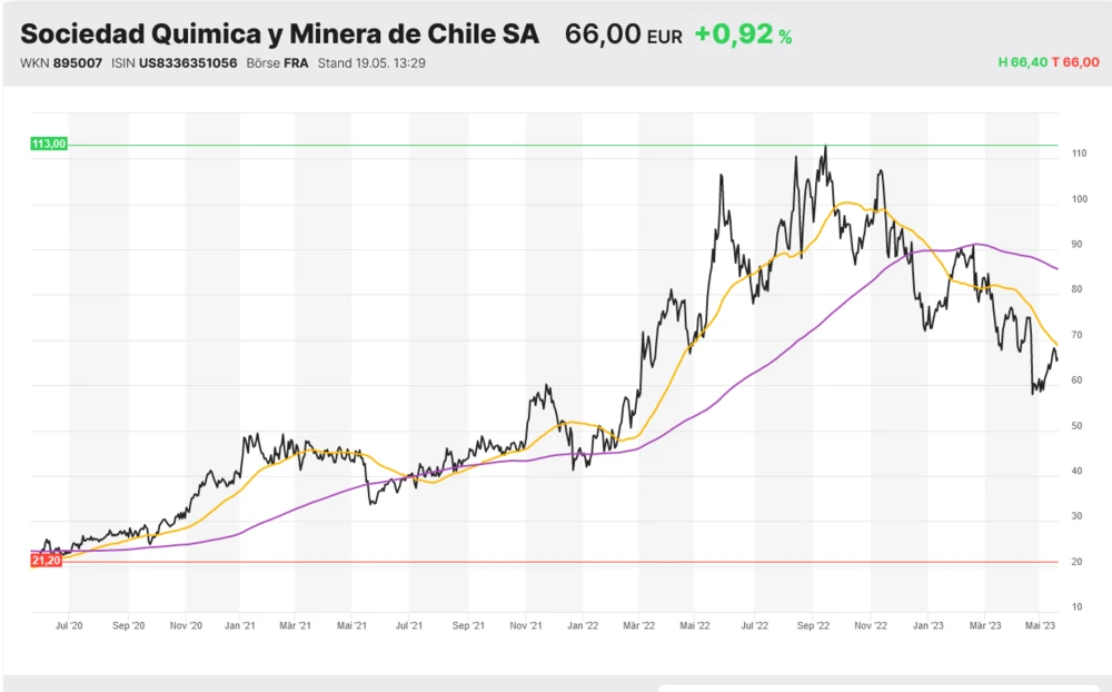 Die Verstaatlichungspläne der Lithium-Industrie haben zuletzt zu starken Kurseinbußen beim chilenischen Lithium-Giganten Sociedad Química y Minera de Chile (SQM)geführt. Vom derzeitigen Jahrestief bei 58 Euro hat sich die Aktie wieder ein gutes Stück erholt. Goldmann Sachs sieht die Aktie kritisch und hat das Unternehmen auf „Sell“ heruntergestuft, das sind die Gründe.
