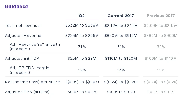 Square selbst hatte bei der Präsentation der Q1-Zahlen im einen bereinigten Umsatz im Bereich von 223 und 226 Millionen Dollar sowie ein bereinigtes EBITDA zwischen 25 und 28 Millionen Dollar in Aussicht gestellt. Die Prognosen für das Gesamtjahr wurden im Zuge dessen angehoben.