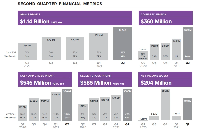 Neben der Afterpay-Übernahme hat Square ganz überraschend auch noch die Zahlen für das zweite Quartal veröffentlicht, die eigentlich erst für Donnerstag angekündigt waren. Demnach hat das Unternehmen den Bruttogewinn im Vergleich zum Vorjahreszeitraum um 91 Prozent auf 1,14 Milliarden Dollar gesteigert – und damit einen Rekordzuwachs verzeichnet.