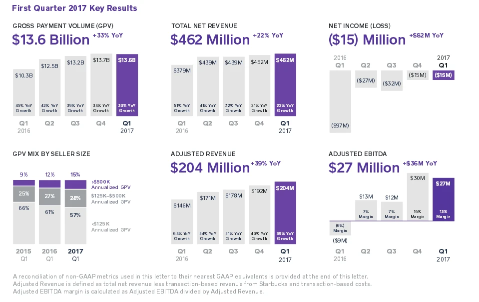 Den Großteil der Umsätze hat das von Twitter-Chef Jack Dorsey gegründete und geführte Unternehmen mit dem Kerngeschäft, der Abwicklung von Kartenzahlungen, erwirtschaftet. Im Bereich „Subscription and Service“, wo Square unter anderem die Unternehmerkreditplattform Square Capital und den Food-Delivery-Dienst Caviar bündelt, hat sich der Umsatz auf 49 Millionen Dollar mehr als verdoppelt.