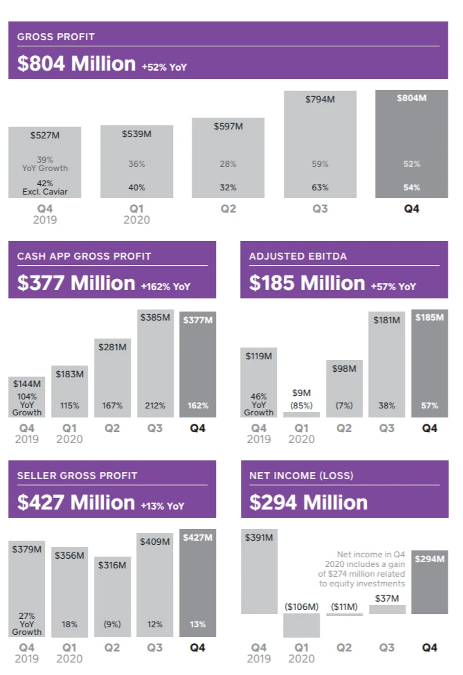 Als Wachstumstreiber haben sich wieder einmal die Finanz-App Cash und dort ganz besonders das Bitcoin-Geschäft entpuppt. Die Zahl der aktiven Nutzer ist zum Jahresende um 50 Prozent auf 36 Millionen gestiegen. Mehr als drei Millionen Nutzer hätten bis Ende 2020 bereits von der Funktion zum Kaufen, Halten und Verkaufen von Bitcoin Gebrauch gemacht. Alleine im Januar 2021 haben über eine Million weitere Kunden erstmals über die App in die Digitalwährung investiert.