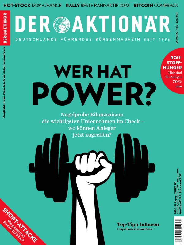 DER AKTIONÄR gibt Ihnen in der aktuellen Ausgabe 07/22 einen Ausblick, in welche Richtung es für Standard Lithium nun gehen kann, was es mit den Angriffen der Shortseller auf sich hat und welche Projekte die Kanadier noch in der Pipeline haben. Anlässlich der laufenden Bilanzsaison stellt die AKTIONÄR-Redaktion außerdem die 15 wichtigsten Unternehmen auf die Probe – wo lohnt sich ein Einstieg und wo könnten sich Anleger jetzt die Finger verbrennen?