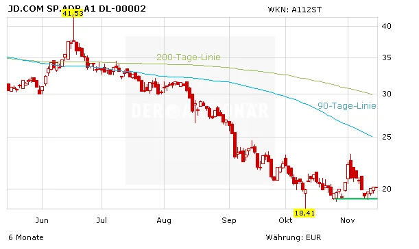 JD.com schraubt sich um 1,6 Prozent nach oben. Die Q-Zahlen des chinesischen E-Commerce-Konzerns konnten fundamental jedoch keine neuen Impulse liefern. Ausbruch vertagt – es wird weiter an einer Bodenbildung gefeilt.