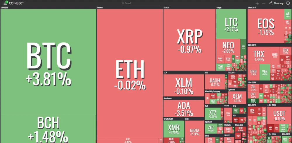 Der Kryptomarkt notiert am Dienstagmorgen überwiegend im Minus. Der Bitcoin setzt seine Erholung jedoch unbeirrt fort und legt als klarer Gewinner in den Top 10 nach Marktkapitalisierung rund vier Prozent zu.