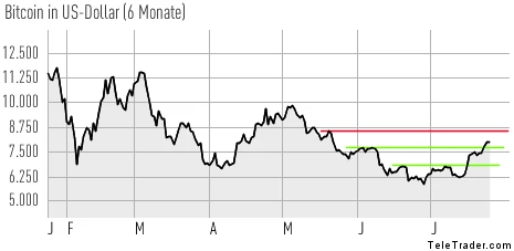 Wichtig wäre nun, dass sich der Bitcoin-Kurs oberhalb des jüngst überwundenen Widerstands behaupten kann. Auf dem Weg in Richtung fünfstelliger Kurse warten im Bereich zwischen 8.500 und 9.000 Dollar bereits die nächsten Widerstände. Kann der Bitcoin seine positives Momentum auch im schwachen Gesamtmarkt weiterhin aufrechterhalten, dürften diese jedoch genauso schnell fallen wie die vorherigen Hürden bei 6.850 und 7.700 Dollar.