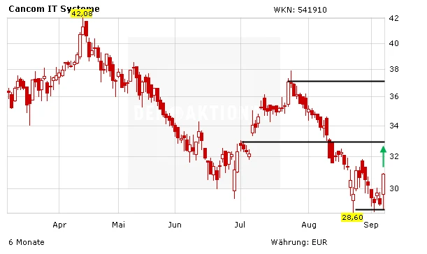 Die Aktie von Cancom hat seit mehreren Wochen den Rückwärtsgang eingelegt. Notierte der TecDAX-Titel Ende Juli noch im Hoch bei 38 Euro, wurden die Papiere des IT-Dienstleisters zuletzt für weniger als 29 Euro gehandelt. Doch nun deutet sich eine Trendwende an. Analysten sehen deutliches Kurspotenzial.