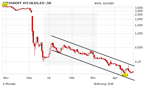 Die Lage des Steinhoff-Konzerns ist weiterhin schwierig. Mit dem Verkauf der Poco-Möbelkette versilbert Steinhoff ein weiteres Asset um sich über Wasser zu halten. Die Papiere des weltweit zweitgrößten Möbelhändlers sind währenddessen zum Pennystock verkommen. Zuletzt wurde der Möbelhändler von der Deutschen Börse vom MDAX in den SDAX degradiert. Kurse jenseits von 3,00 Euro gehören schon länger der Vergangenheit an. Nach dem deutlichen Kurssturz bewegt sich die Aktie seit Anfang des Jahres immer weiter abwärts und markierte zuletzt ein neues Rekordtief bei 0,12 Euro. Es bleibt weiterhin unklar, ob Steinhoff die Folgen des Bilanzskandals wegstecken kann. Für Anleger gilt: Finger weg!