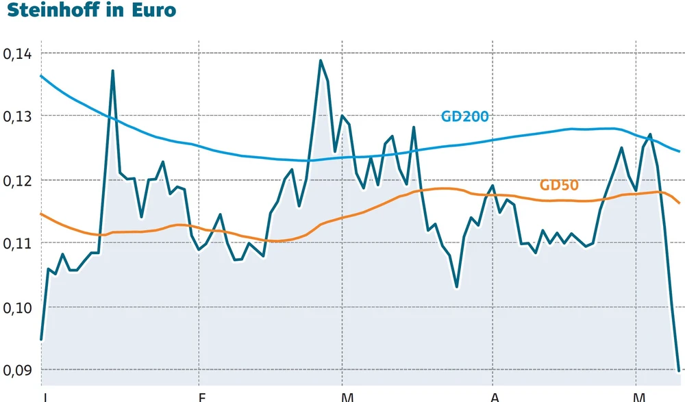 Die Situation bei Steinhoff vertreibt auch hartgesottene Zocker. Die Aktie nähert sich nun dem 6-Monats-Tief vom Dezember bei 0,88 Euro an. Das Rekordtief liegt bei 0,0762 Euro und wurde im Juni 2018 markiert.