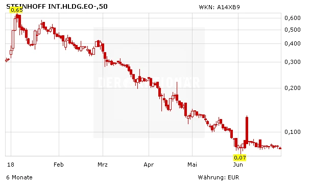 Trotz der Zuversicht seitens Steinhoff bleibt abzuwarten, ob die Gläubiger die Stillhaltevereinbarung über den 30. Juni hinweg verlängern werden. Die in den vergangenen Monaten im Zuge eines Bilanzskandals zum "Pennystock" verkommene Aktie des Möbelkonzerns erreichte zuletzt ein neues Allzeittief bei 0,07 Euro. Seit Ende 2017 summieren sich die Kursabschläge auf 98 Prozent.