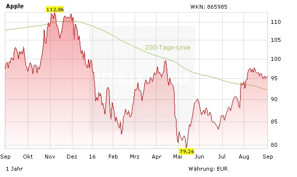 Selbst wenn die Strafe der EU-Kommission an sich keine großen Auswirkungen auf die Bilanz haben wird, dürfte die Aktie dadurch weiter unter Druck geraten. Zudem bleibt abzuwarten, was mit den rund 210 Milliarden Dollar geschieht, die Apple auf ausländische Konten angehäuft hat. Nach aktueller US-Gesetzgebung wären bei einem Rücktransfer bis zu 40 Prozent Steuern fällig. Nicht investierte Anleger warten ab. Bereits investierte Aktionäre halten ihre Position bei einem Stopp von 77 Euro.