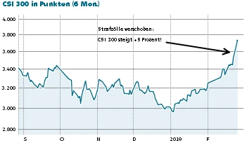 Die USA haben die Deadline für die Einführung von Strafzöllen auf chinesische Importe verschoben und damit eine Kursrallye an den chinesischen Börsen ausgelöst. Im Fokus der Anleger stehen die üblichen Verdächtigen wie Alibaba. Werte aus der zweiten Reihe versprechen aber mindestens ebenso hohes Kurspotenzial. DER AKTIONÄR nennt seine Favoriten.