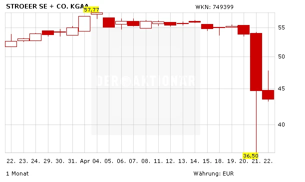 Die Ströer-Aktie brach gestern massiv ein, nachdem der Hedgefonds Muddy Waters veröffentlicht hatte, eine Short-Position auf Ströer zu halten. Muddy Waters hegt sowohl an den veröffentlichten Zahlen als auch am digitalen Geschäftsmodell Zweifel. Zwischenzeitlich konte sich der Kurs zwar vom Tief bei 36,10 Euro wieder erholen, notiert aber immer noch rund 25 Prozent unter dem Niveau von vor der Short-Attacke. Gestern wurden im Tief zwischenzeitlich mehr als 780 Millionen Euro Börsenwert vernichtet.