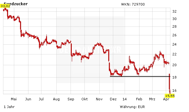 Südzucker schockte am Dienstag seine Aktionäre mit einer Prognosesenkung. Für das laufende Jahr rechnet der Konzern mit einem operativen Gewinneinbruch von fast 70 Prozent. Der Kurs der Südzucker-Papiere brach daraufhin im Handelsverlauf um rund 20 Prozent ein.