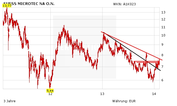 Entscheidend für den Kursverlauf werden jedoch weniger die vergangenen Zahlen als vielmehr der Ausblick und die Aussichten für 2014 sein. Insgesamt erwarten Branchenexperten eine Erholung des Marktes, nachdem im vierten Quartal bei einigen Firmen eine robuste Auslastung und vor allem eine hohe Investitionstätigkeit bei Waferherstellern zu beobachten war. Das sollte sich im Laufe des Jahres auch in steigenden Auftragsvolumina bei Süss Microtec niederschlagen. Vor allem ist davon auszugehen, dass Samsung Folgeaufträge platzieren wird, um die technologisch neuen Prozessoren für die Galaxy-Reihe, die ab 2015 in die Serienproduktion geht, herzustellen.