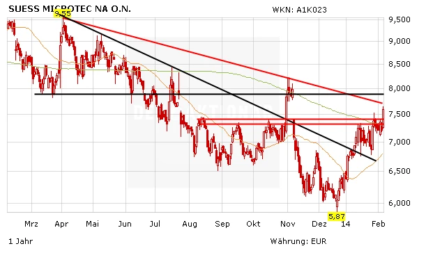 Süss Microtec konnte den gestrigen Handel mit einem deutlichen Plus beenden. Mitte Februar wird der Zulieferer für die Halbleiterindustrie die Zahlen für das vierte Quartal und damit das Gesamtjahr 2014 vorlegen. Was können die Anleger von der Aktie erwarten?