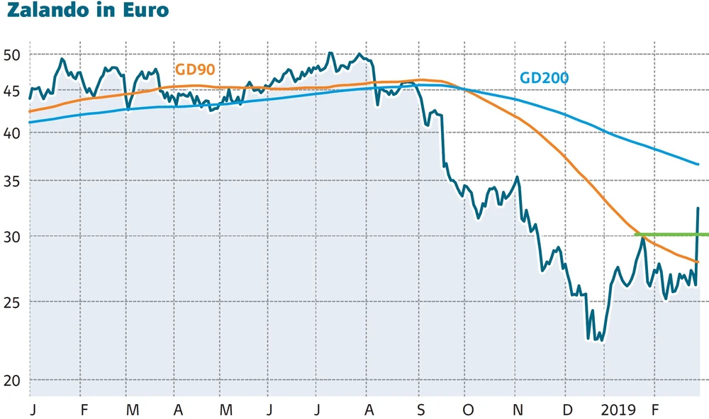 Die Aktie drehte mächtig auf, gewann in der Spitze 25 Prozent. Zalando hatte 2018 mit zwei Gewinnwarnungen innerhalb kurzer Zeit und mauen Zahlen viel Vertrauen verspielt. Die Aktie war gecrasht.