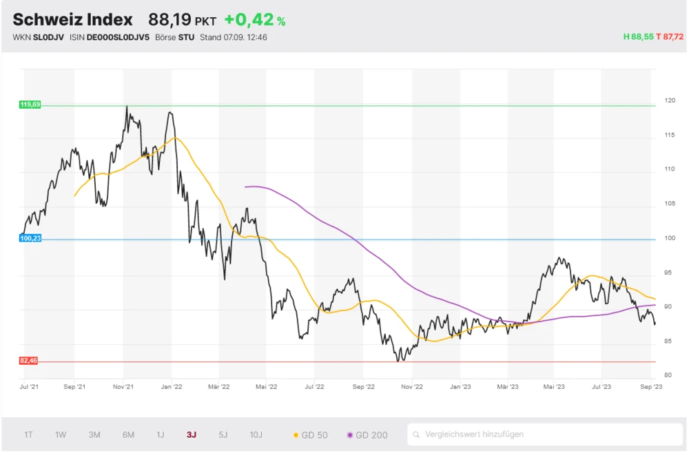 Swatch Group ist Mitglied im DER AKTIONÄR Schweiz Index. Bei dem Index handelt es sich um einen dynamischen Index, der alle sechs Monate in die trendstärksten Aktien der Schweiz investiert. Mit dem Indexzertifikat WKN DA0AAW können Anleger nahezu eins zu eins an der Entwicklung von 15 Konzernen teilhaben. Dabei zählen Roche, Nestlé und Novartis zu den ständigen Mitgliedern des Index.