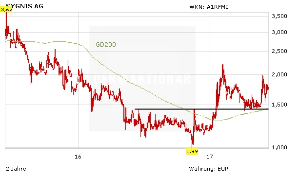 Die Aktie von Sygnis hat sich in den vergangenen Monaten von ihren Tiefstständen entfernen können. Aus charttechnischer Sicht wäre es wichtig, dass der Sprung über das Jahreshoch im Bereich von 2,20 Euro gelingen würde. Ein positiver Newsflow würde dies von fundamentaler Seite unterstützen.
