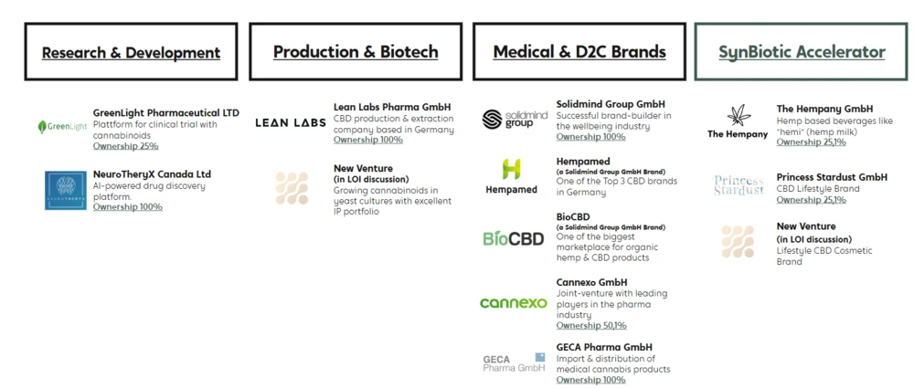 Durch die Buy & Build-Strategie wollen wir auf lange Sicht eine breit diversifizierte Unternehmensgruppe im europäischen Cannabis-Sektor hochziehen. Unser Fokus liegt bei Zukäufen in erster Linie auf Unternehmen, die von der Forschung über die Produktentwicklung bis zum Vertrieb agieren. Ziel ist es, Synergieeffekte zum Beispiel bei der Forschung zu nutzen.