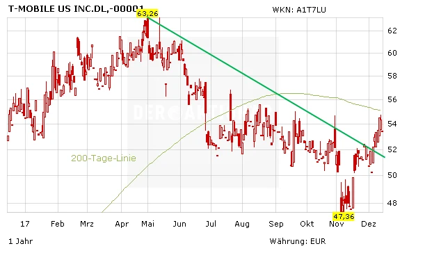 Die Aktie von T-Mobile US kann in der laufenden Handelswoche zulegen. Der Kauf von Layer3 TV bewegte den Kurs dagegen kaum. Noch heißt es abwarten, ob der Konzern ebenso erfolgreich Kunden gewinnen kann wie im Mobile-Bereich. Der AKTIONÄR bleibt beim Kursziel von 70,00 Dollar.