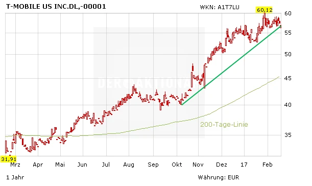 Bei einer Kursrallye von rund 30 Prozent seit den Q3-Zahlen Ende Oktober ist ein Großteil des starken Kundenwachstums bereits eingepreist. Zusätzlich könnte es im laufenden Jahr für T-Mobile US schwieriger werden den kostenintensiven Preiskampf aufrechtzuerhalten. DER AKTIONÄR empfiehlt die Hälfte der Gewinne mitzunehmen und die andere Hälfte als spekulative Position im Depot zu belassen. Denn 2017 könnte ebenso das Jahr der langerwarteten Übernahme sein.