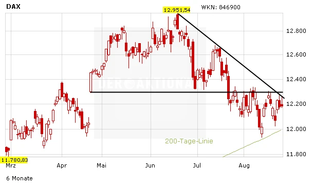 Der DAX bewegt sich am Freitag weiter um 12.200 Punkte. Das Treffen wichtiger Notenbanker in Jackson Hole hat zwar bereits begonnen. Die mit Spannung erwarteten Reden von Fed-Chefin Janet Yellen und EZB-Präsident Mario Draghi finden aber erst heute statt. Bis dahin dürften sich die Impulse für den Markt in Grenzen halten.