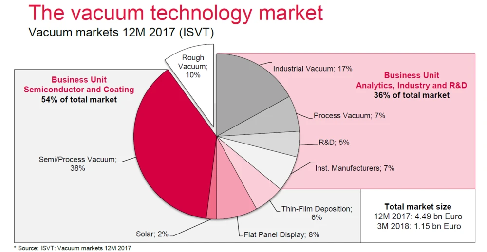 Pfeiffer Vacuum ist auf Kurs: Im vergangenen Jahr stieg der Umsatz um zwölf Prozent auf 659,7 Millionen Euro und damit auf einen neuen Bestwert. Der Erlös lag damit am oberen Ende der Unternehmensprognose. Beim Gewinn vor Zinsen und Steuern verzeichnete das Unternehmen einen Anstieg um ein Drittel auf 95 Millionen Euro. Die Marge steig damit auf 14,4 (Vorjahr: 12,2) Prozent gestiegen. Der Auftragsbestand zog um 14 Prozent auf 145 Millionen Euro an. Kein Wunder: Die Vakuumtechnologie ist ein Schlüsselfaktor für die Gestaltung der Zukunft vieler Branchen.