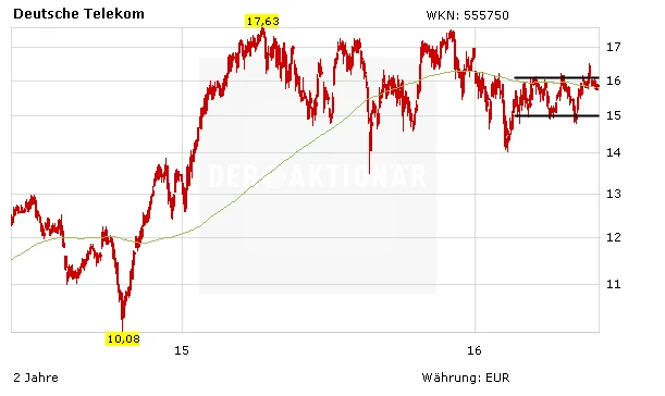 Zuletzt hob die australische Investmentbank Macquarie das Kursziel für die Telekom-Tochter T-Mobile US von 42 auf 45 Dollar an. Deshalb hoben die Analysten auch das Ziel des Mutterkonzerns an: von 15 auf 15,20 Euro. Der AKTIONÄR ist da mit einem Kursziel von 20 Euro optimistischer. Er rechnet damit, dass die Aktie den Seitwärtstrend nach oben durchbricht.