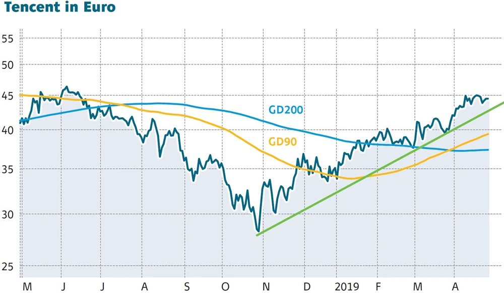 Gelingt es Tencent hier zu alter Stärke zurückzukehren, dürfte die Aktie rasant in Richtung Allzeithoch steigen. Zum Vergleich: Vor dem Monetarisierungs-Stopp erzielte Tencent mit Smartphone-Games ein Umsatzwachstum von 59 Prozent von 2016 bis 2017 – von 2017 bis 2018 betrug der Anstieg dann nur noch 24 Prozent. Im vierten Quartal 2018 sogar nur 12 Prozent.