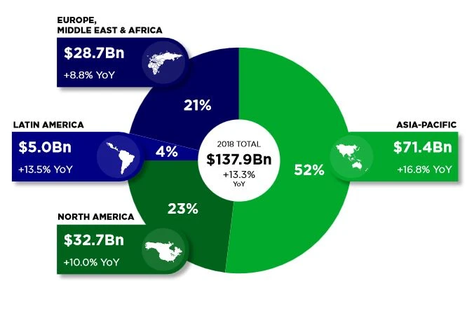 Die Umsatzerwartungen für den Gaming-Markt sind Top. 2019 sollen knapp 138 Milliarden Dollar erwirtschaftet werden.