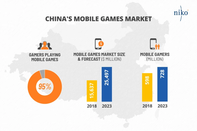 Laut den Marktforschern verfügte China 2018 über knapp 600 Millionen Smartphone-Spieler, die einen Umsatz von 15,8 Milliarden Dollar ermöglichten. 2023 sollen es rund 700 Millionen Spieler sein, der Umsatz soll auf 25,5 Milliarden Dollar ansteigen.