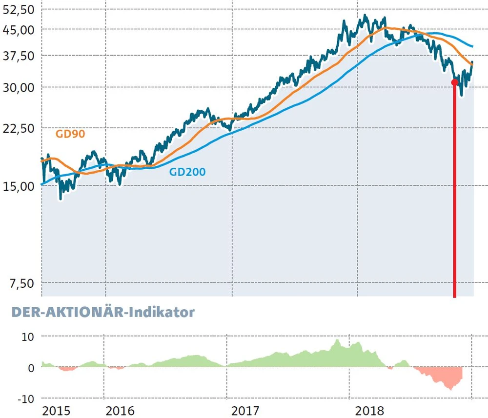 Die erste Position, die DER AKTIONÄR bei 31,66 Euro in Ausgabe 42/2018 empfahl, kann hier aufgestockt werden.