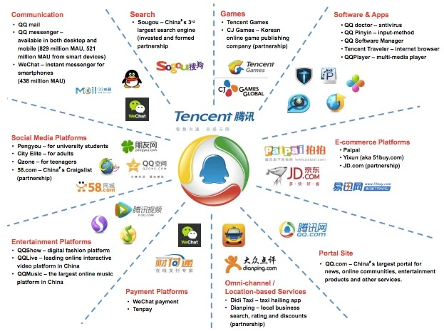 Tencent veröffentlichte fürs Gesamtjahr 2016 einen Umsatzsprung gegenüber dem Vorjahr um 48 Prozent auf 21,9 Milliarden Dollar. Der operative Gewinn legte 38 Prozent auf 8,09 Milliarden zu. Besondere Highlights innerhalb des Tencent-Firmengeflechts finden sich in den Geschäftsfeldern Soziale Netzwerke, Bezahldienste und Gaming.