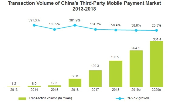 Zum anderen profitiert Tencent als einer der Marktführer von dem rasanten Wachstum des chinesischen Mobile-Payment-Marktes. Laut iResearch soll das Transaktionsvolumen im abgelaufenen Jahr um 38,6 Prozent auf 264,1 Billionen Yuan anwachsen.