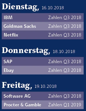 Es wird wieder spannend an der Börse. Im Oktober nimmt die Berichtssaison an Fahrt auf. Während in den USA bereits zahlreiche namhafte Konzerne wie Netflix oder Ebay ihre Quartalszahlen veröffentlichen, geht es in Deutschland noch ruhiger zu. Mit SAP macht ein DAX-Schwergewicht aber auch schon in der kommenden Woche den Anfang.